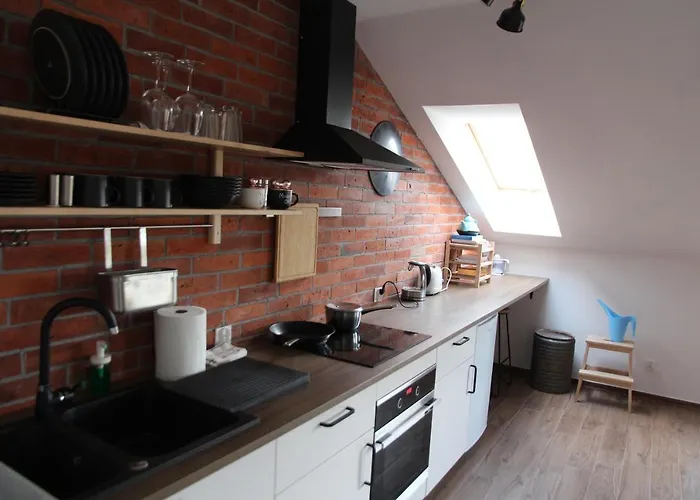 Dotato di servizi di self-catering come un angolo cottura attrezzato, quest'appartamento assicura agli ospiti una zona pranzo per gustare i propri pasti. Quest'alloggio è dotato di servizi per la preparazione di tè/caffè. Quest'appartamento con 1 camera da letto, Golubski Loft è situato a 45 km dall'aeroporto di Danzica Lech Wałęsa.